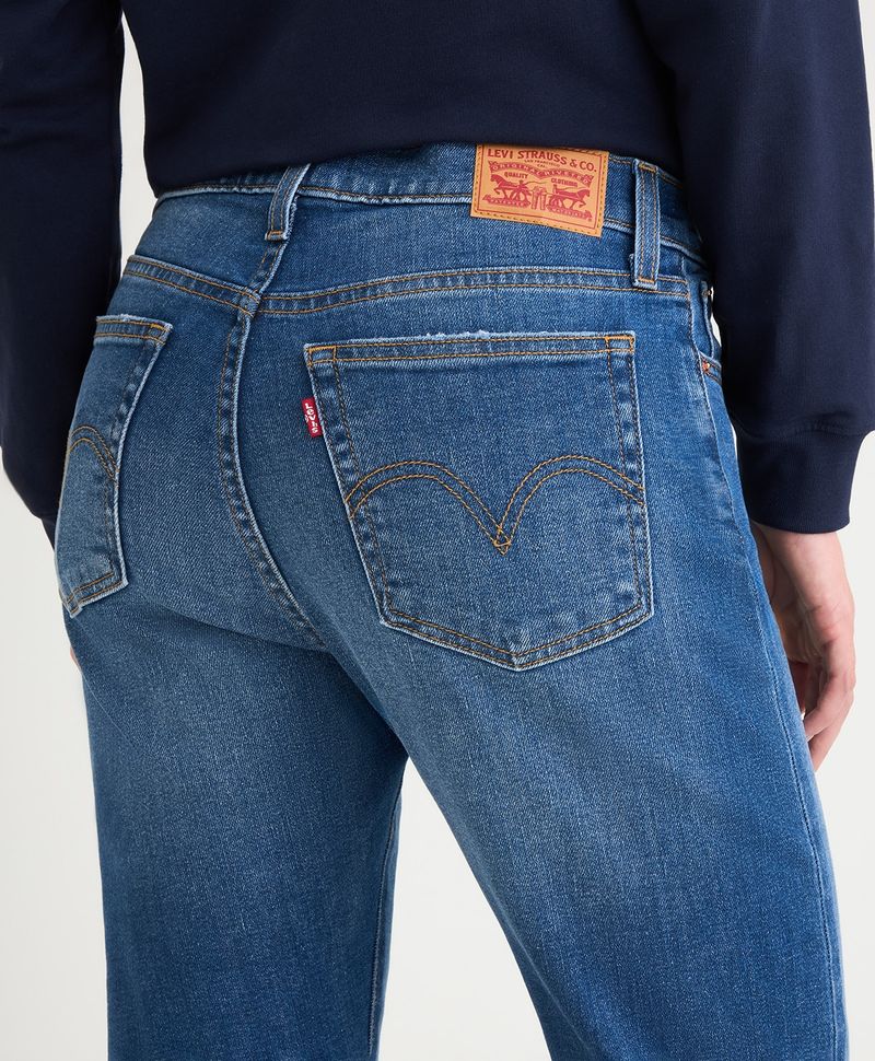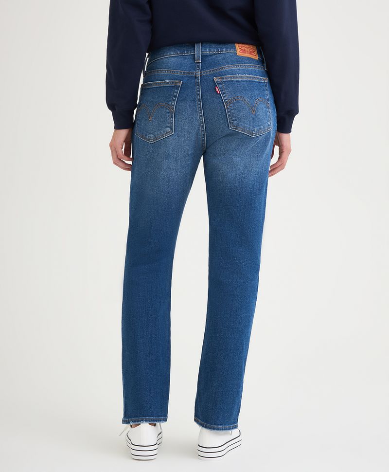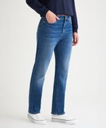 Ajuste y Tamaño Corte regular. Tiro alto. Pierna recta. Lavado medio. Tiene ajuste en cintura, cadera y glúteo.