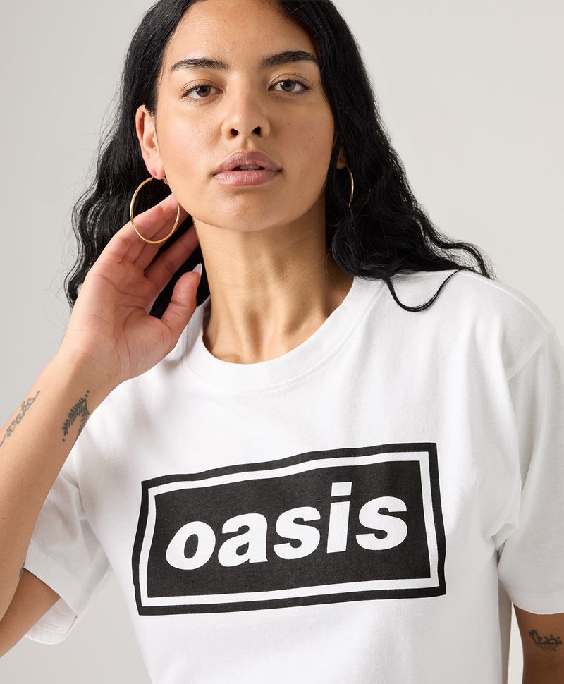 Camiseta unisex de ajuste relajado con cuello redondo clásico y manga corta, creada como homenaje a nuestra música favorita y al legado noventero de Oasis. Incluye gráfico de Oasis al frente, capturando esa actitud brit-rock que la convierte en el complemento perfecto para tus jeans. * Homenaje a Oasis y a la estética retro de los 90. * Ajuste relajado (relaxed fit). * Gráfico frontal de la banda. * Tallaje unisex: para mujeres, se recomienda pedir una talla menos de la habitual.