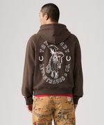 Buzo tipo hoodie de corte regular con manga larga y práctica capucha, ideal para acompañarte sin importar el clima. En la espalda lleva estampado que muestra al vaquero Woody y tiene práctico bolsillo canguro con pequeño parche en el que se puede ver al caballo Tiro al Blanco.