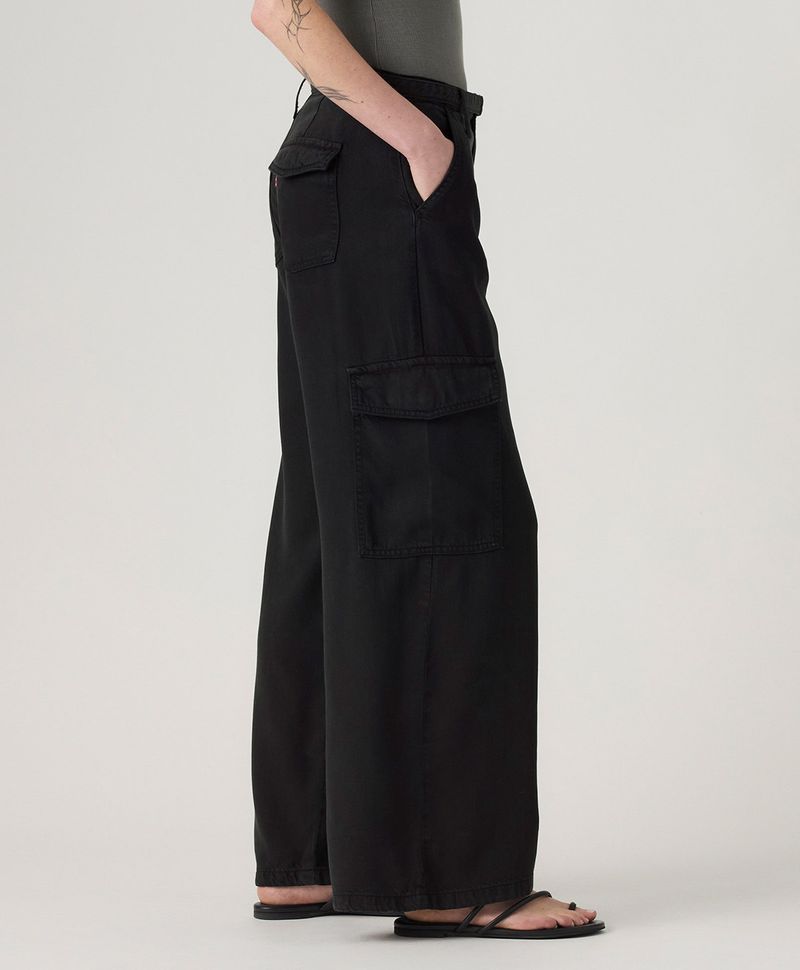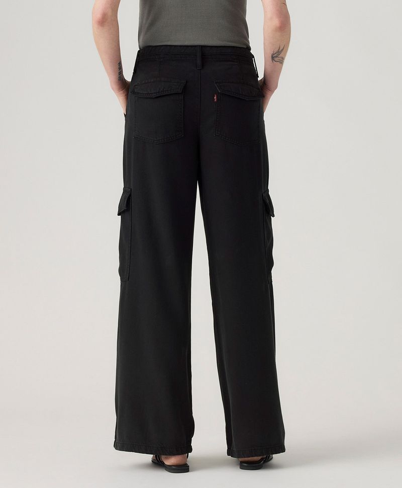 Ajuste y Tamaño Amplio desde la cadera, con volumen en los muslos, rodillas y piernas. Pierna ancha con caída suelta. Tiro medio, justo sobre la cadera. Estilo urbano, relajado y fresco. Bolsillos tipo cargo.