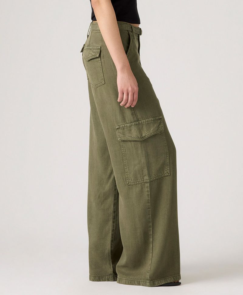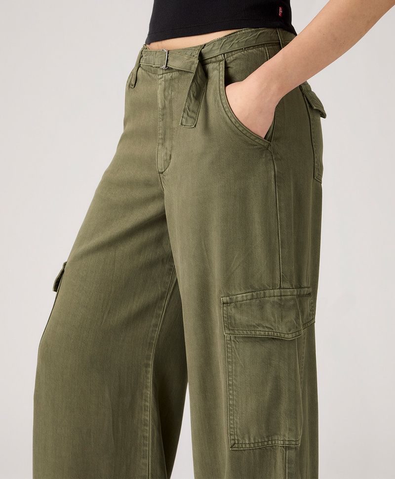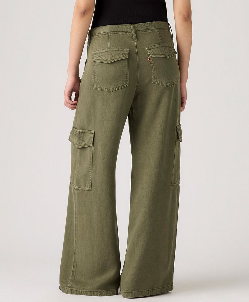 Ajuste y Tamaño Amplio desde la cadera, con volumen en los muslos, rodillas y piernas. Pierna ancha con caída suelta. Tiro medio, justo sobre la cadera. Estilo urbano, relajado y fresco. Bolsillos tipo cargo.