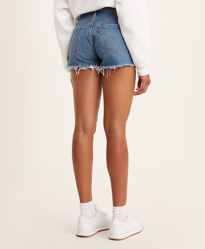 Ajuste y Tamaño Icónico 501. Versátil y fácil de combinar. Corte regular. Cintura alta. Pierna corta. Denim de mezclilla. Lavado medio. Botones en bragueta.